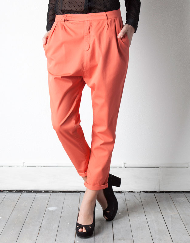 3. Chinos: son pantalones anchos por las caderas pero apretados por las piernas. También se llevan de colores.